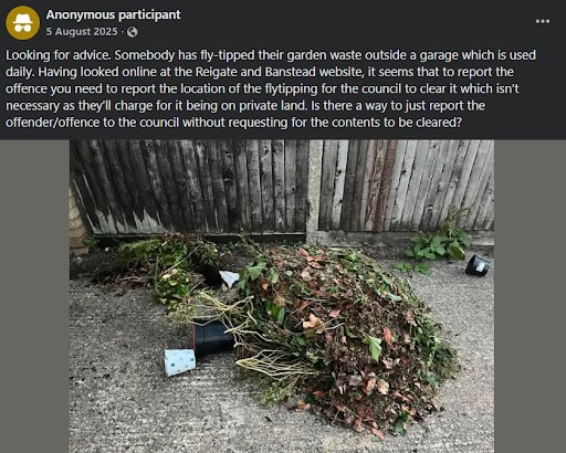 Fly tipping is a Surrey-wide issue, frequently discussed in local Facebook groups and community forums. A Merstham resident recently reported that someone had fly tipped garden waste outside a garage used daily. Because the waste was left on private land, there was concern the resident could be held responsible for removal costs. Situations like this highlight why proper waste management and accurate waste transfer notes are essential for businesses. Without clear documentation, it can be difficult to prove where waste came from and who is responsible.